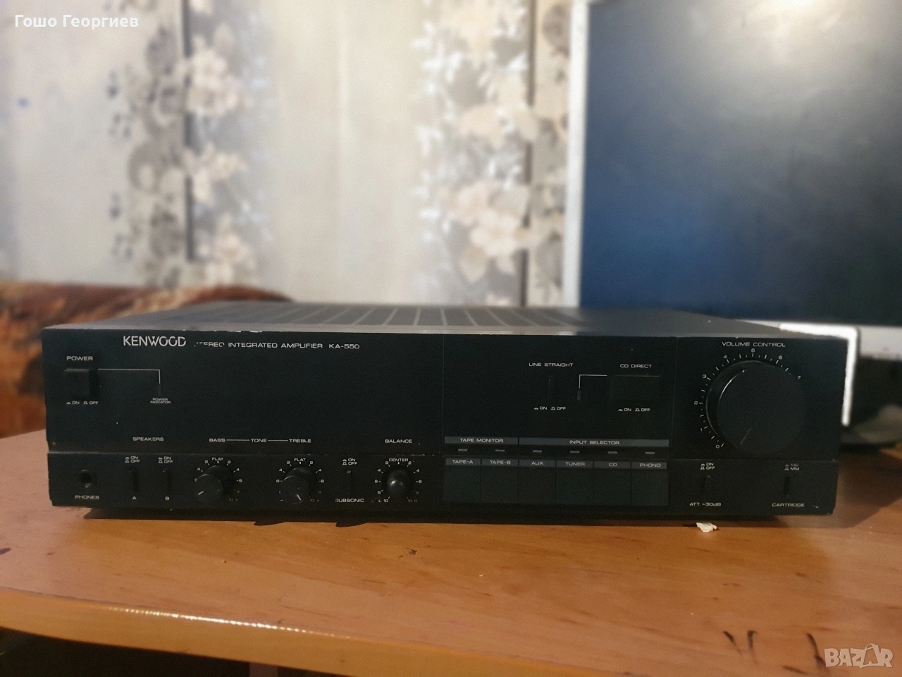 Kenwood ka-550- отлично състояние, всичко работи отлично, има допълнително монтирана отзад платка на букси за професионални тонколони. Цена 50€