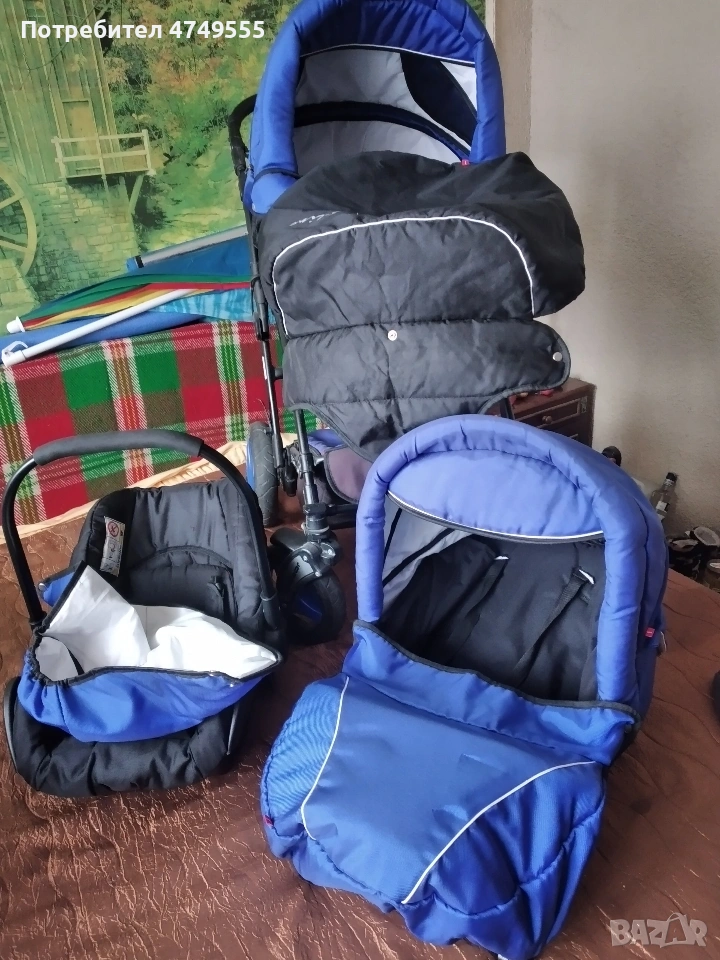 Детска или става и бебешка количка супер удобна с летен и зимен кош също покривало за дъжд и кош за пренасяне на бебето без забеляжки