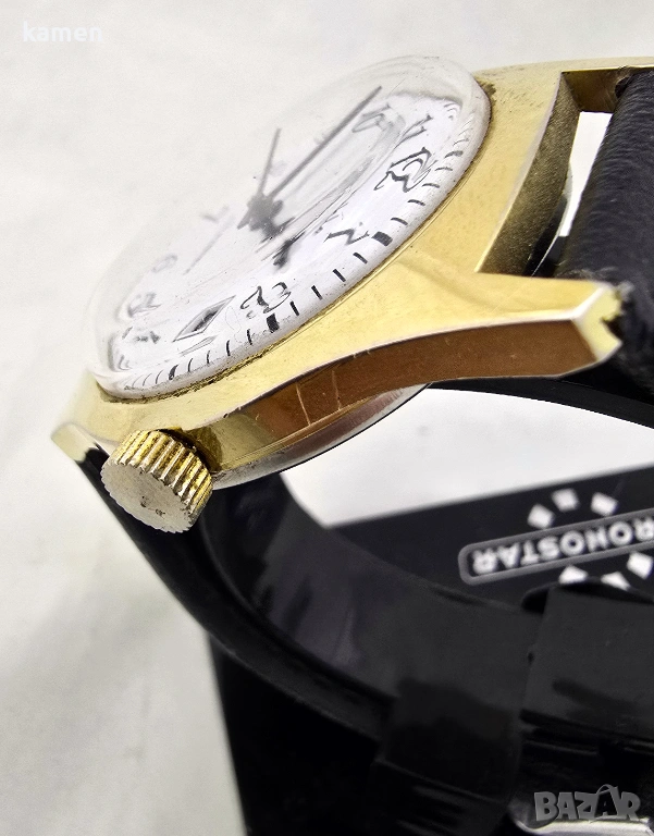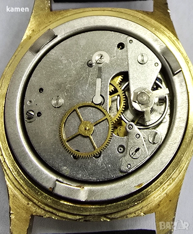 Продава се красив механичен часовник от известната фабрика Ruhla в Източна Германия (ГДР). Този модел е перфектен пример за европейско часовникарство от средата на века, съчетаващ функционална естетика с надежден механизъм с ръчно навиване.