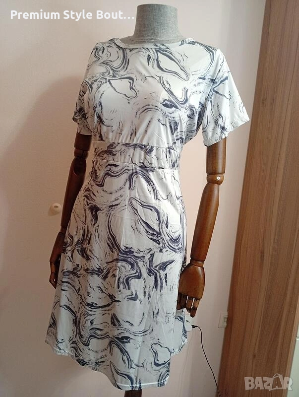 Бяла рокля с мраморен принт → Обява 53658950