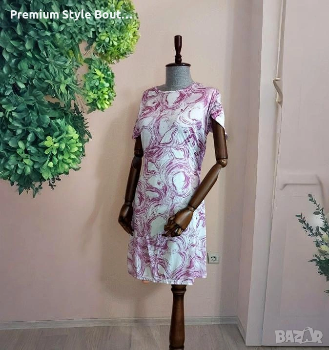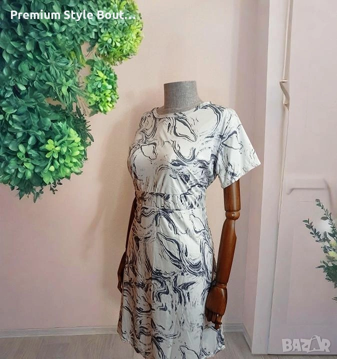 Минималистичен дизайн с артистичен подход – тази рокля напомня за мраморни шарки, изрисувани с четка. В неутрални тонове и с класическа кройка, тя предлага свобода и стил в едно. Отличен избор за фенките на сдържаната елегантност. Размер L
