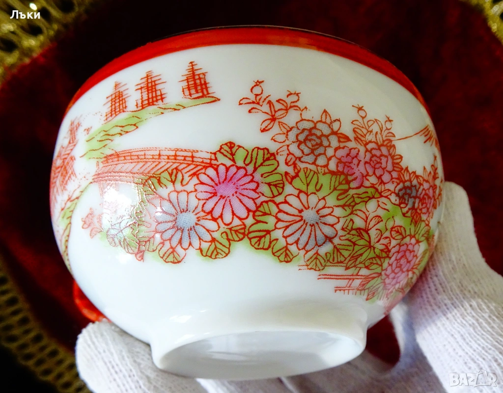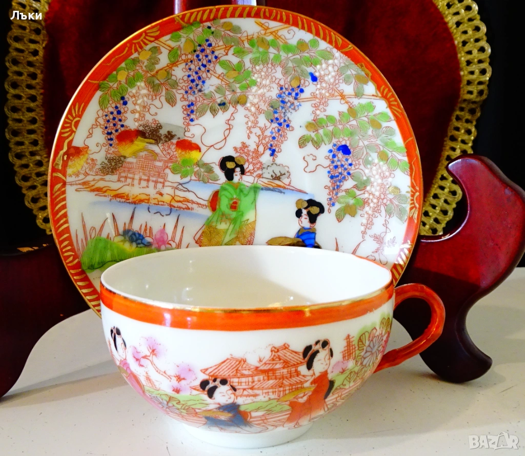 Стар порцеланов комплект от чаша с чиния,японски костен
