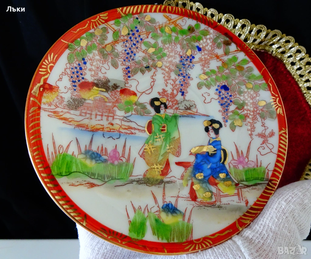 порцелан тип яйчена черупка,ръчно рисуван с гейши сред красиви японски градини