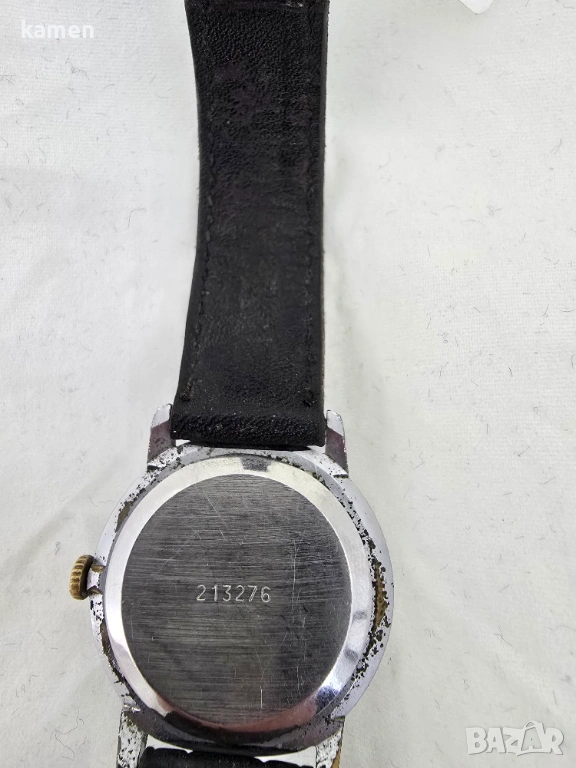 Каишка: Предлага се с оригиналната си винтидж кожена каишка, която е добре запазена и придава страхотно ретро усещане на часовника.