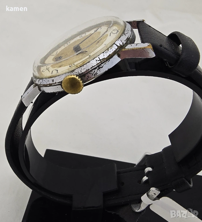 Корпус: Хромиран корпус, показващ автентично износване и характер, съответстващи на възрастта му.