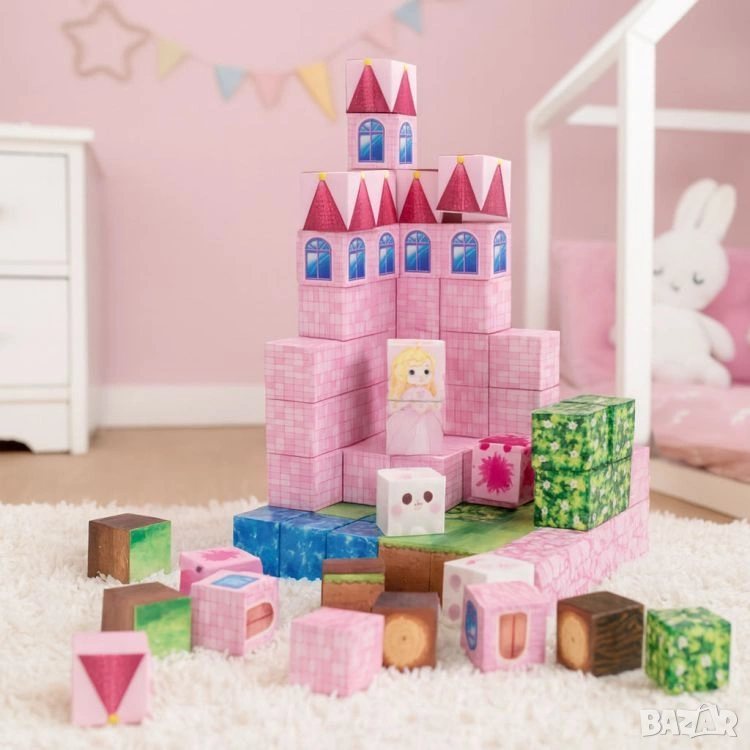 Благодарение на вградените магнити цветните кубчета с мотиви на приказни принцеси и зайчета се свързват лесно и създават стабилни 3D сгради. Децата могат да строят замъци, къщи или свои собствени творчески светове, като същевременно развиват въображението, пространственото възприятие и логическото си мислене.