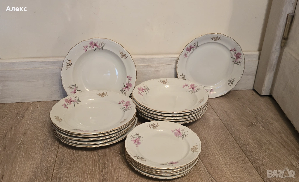 Бохемия Чехословакия– сервиз за хранене, костен порцелан, 17части → Обява 53659743