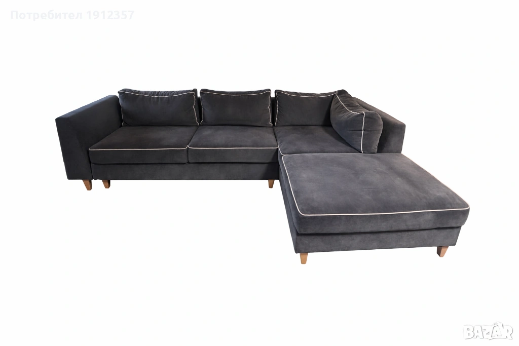 Продавам модерен ъглов диван в тъмносив цвят с бял кант и ракла. Диванът е удобен, стабилен и подходящ както за хол, така и за офис или апартамент под наем. Мека и приятна на допир дамаска, лесна за поддръжка. Стабилни дървени крака.