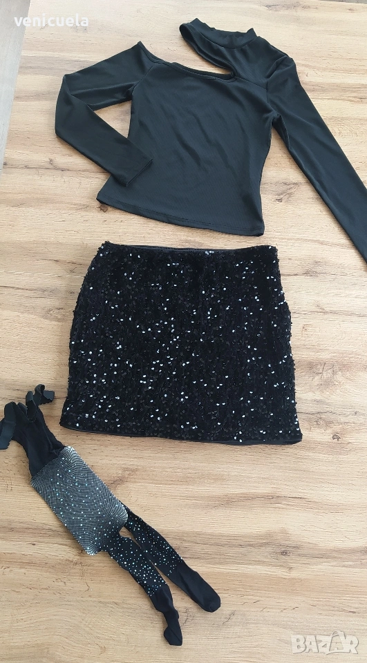 *Черна пола с пайети - НОВИ. Размери XS, M и L. Цена 10€