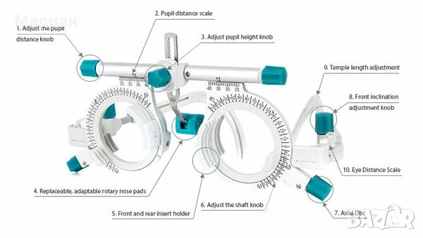 ЧИСТО НОВИ 2 БР ЦЕНАТА Е ЗА БРОЙ Регулируема пробна рамка за оптични лещи 48-80 мм, оптометрична рамка за лещи, тестова оптика, за центрове за здраве на зрението, центрове за обучение по оптометрия, офталмологични болници Регулируемо междузенично разстояние】:Пробна рамка за очна оптометрия. Регулируемият диапазон на междузенично разстояние за двете очи е 48 ~ 80 мм, междузеничното разстояние между лявото и дясното око е 24 ~ 40 мм, максималният мащаб е 1 мм, а регулируемият диапазон за едно око е 24 ~ 40 мм. ☑ 【Измерване на разстоянието между очите】:Има функцията на линийка за измерване на разстоянието между очите и разстоянието от най-вътрешната леща до върха на роговицата може да бъде точно изчислено чрез тестване на линийката върху рамката. ☑ 【Регулируема височина на зеницата】:Чрез копчето за регулиране на височината на зеницата на тестовата рамка, тя може да се регулира според нуждите на зеницата на различните обекти. ☑ 【Ултралека пробна рамка】:50g офталмологичен титан може да постави 5 лещи едновременно, 3 лещи отпред и 2 лещи отзад; подобрява удобството на оптометрията и не тежи много при употреба. ☑ 【Регулируема рамка за пробни лещи】:Антероградният ъгъл на тестовата рамка може да се регулира според различните форми на лицето на клиентите, а дължината на слепоочията може да се регулира, скалата е точна и изчислението е удобно