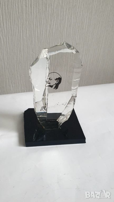 Масивна статуетка от стъкло с портрет на Ленин.Тегло 800гр.,размери 14/8см.