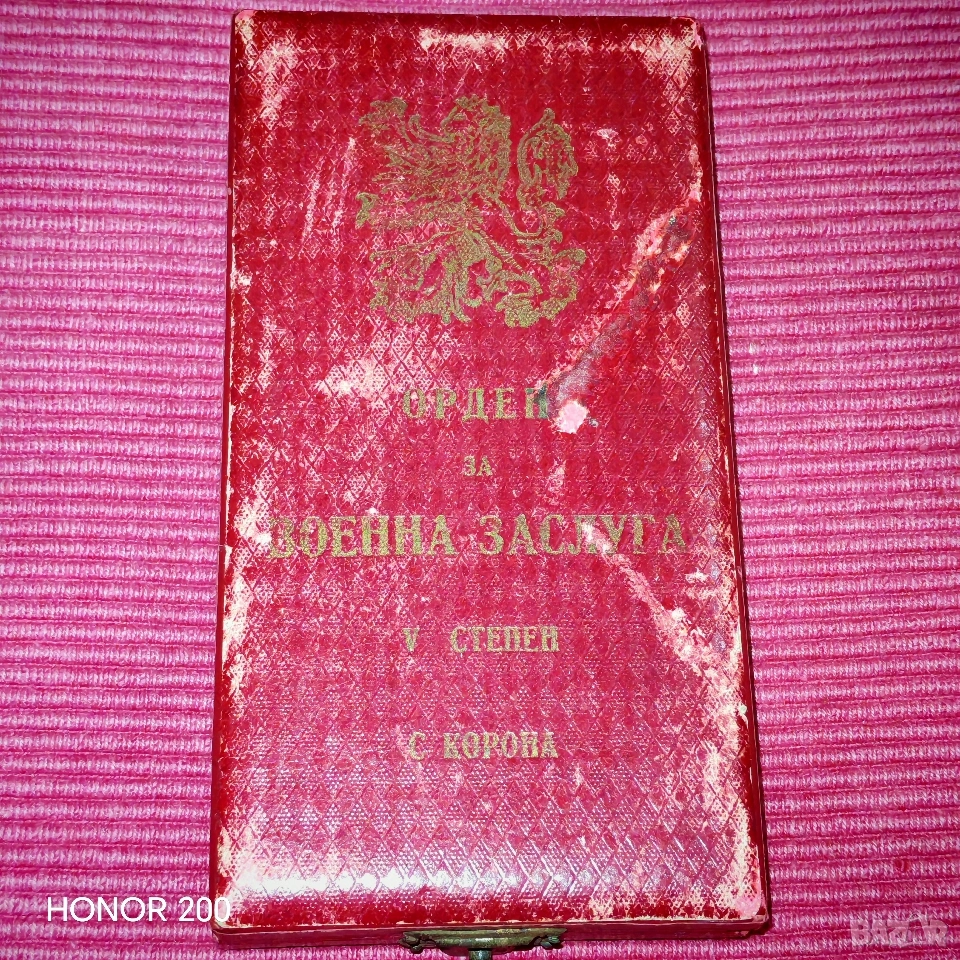 Рядка кутия за орден за военна заслуга 5 степен с корона. На кутията е изобразен лъв. Еконт, Спиди, лично предаване. Телефон за връзка 0885776829.