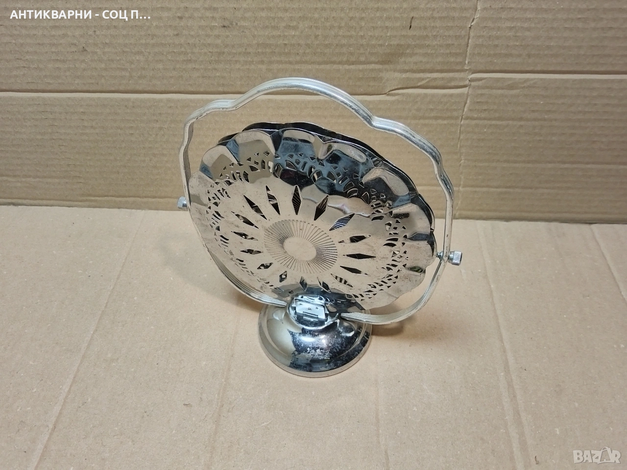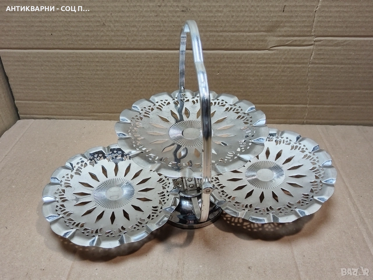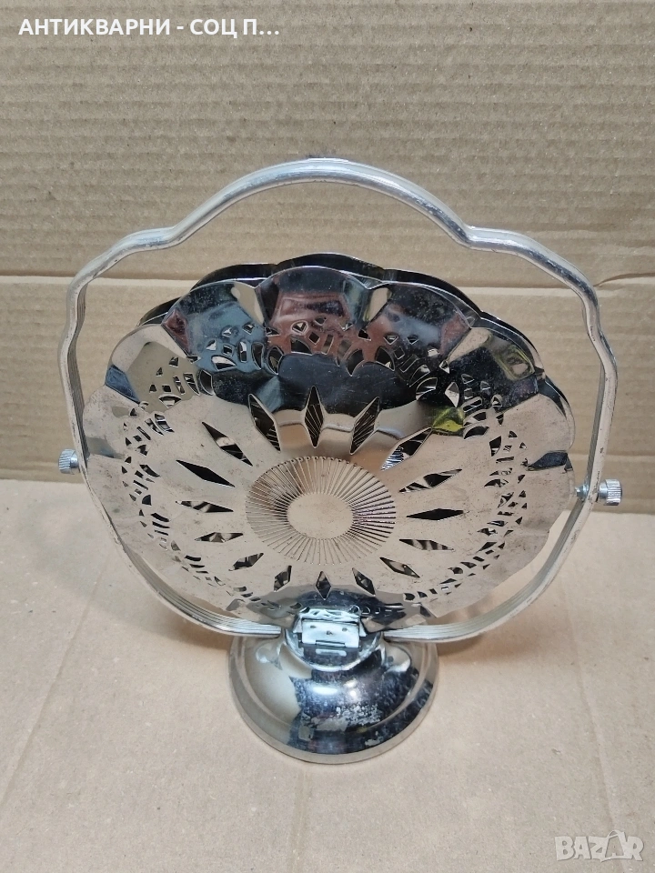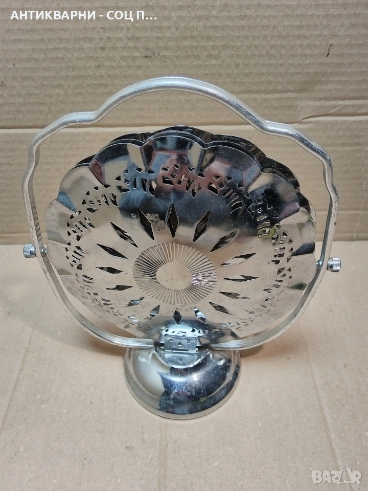 Здравейте - Продавам Стара Соц Метална Сгъваема Бонбониера, Поднос За Бонбони, Сладки и Други.