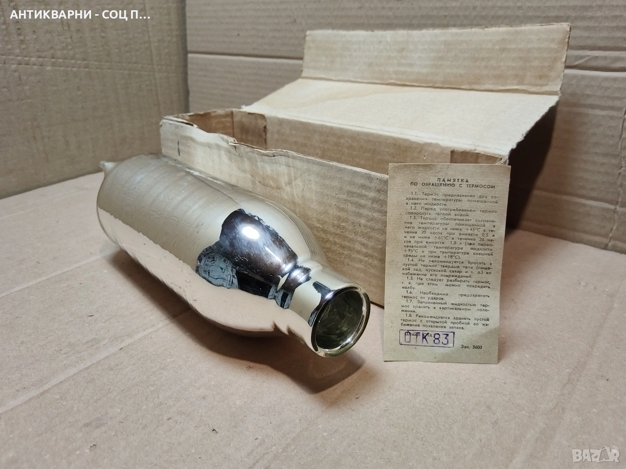 - Термоса е в чисто нов в оригиналната си кутия, прекрасен за колекционери или декорация на битов кът и много други, всичко е снимано подробно, размерите са на снимките!
