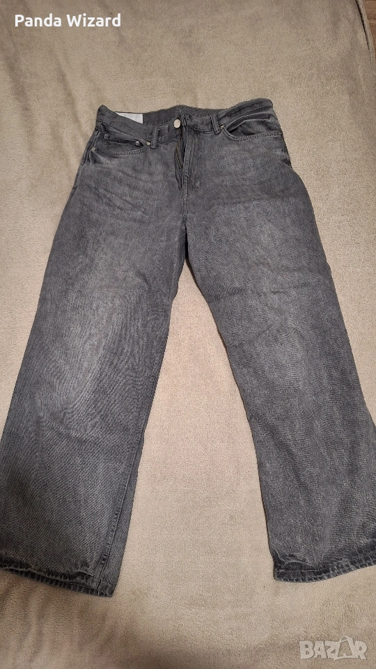 Продавам мъжки дънки H&M Baggy Jeans в светлосив цвят (Medium denim grey). Моделът е с модерна свободна кройка (loose fit), която стои отлично. Дънките са от качествен 100% памучен деним. Размерът по етикет е 32/32 (CN 175/82A), като моделът е по-скоро Large. Обличани са само веднъж за проба и са практически нови, без никакви следи от употреба или дефекти. Продавам ги, защото не ми паснаха като кройка. Изпращам с Еконт или Спиди с опция за преглед и тест. При интерес, моля пишете на лично съобщение!