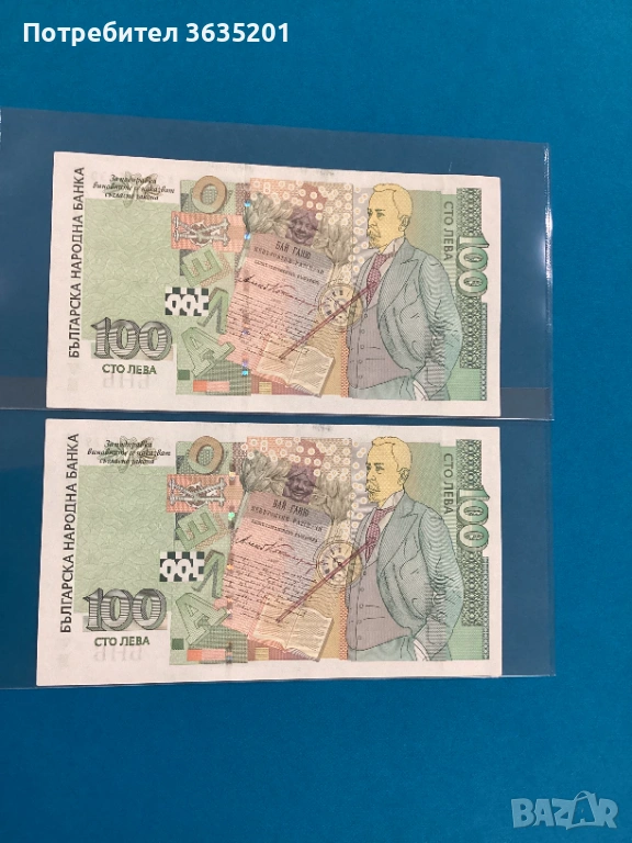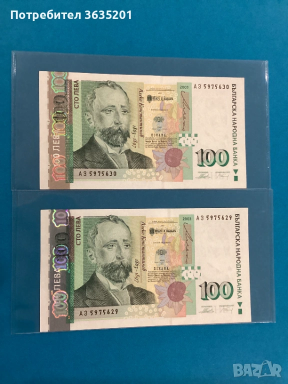 100 ЛЕВА 2003 поредни номера , снимка 1 - Нумизматика и бонистика - 53660649 100 ЛЕВА 2003 поредни номера , снимка 2 - Нумизматика и бонистика - 53660649 1/2