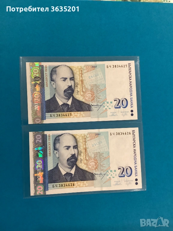 20 ЛЕВА 2007 поредни номера , снимка 1 - Нумизматика и бонистика - 53660682 20 ЛЕВА 2007 поредни номера , снимка 2 - Нумизматика и бонистика - 53660682 20 ЛЕВА 2007 поредни номера , снимка 3 - Нумизматика и бонистика - 53660682 20 ЛЕВА 2007 поредни номера , снимка 4 - Нумизматика и бонистика - 53660682 1/4
