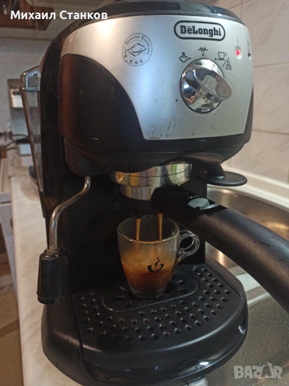 Кафе машина Делонги с ръкохватка крема диск работи перфектно и прави супер кафе с каймак