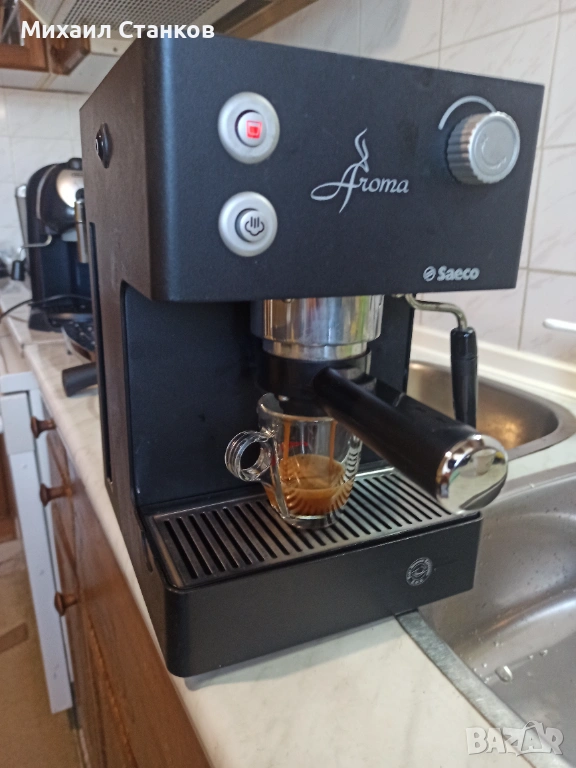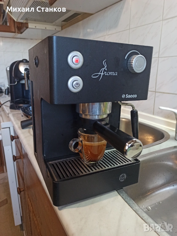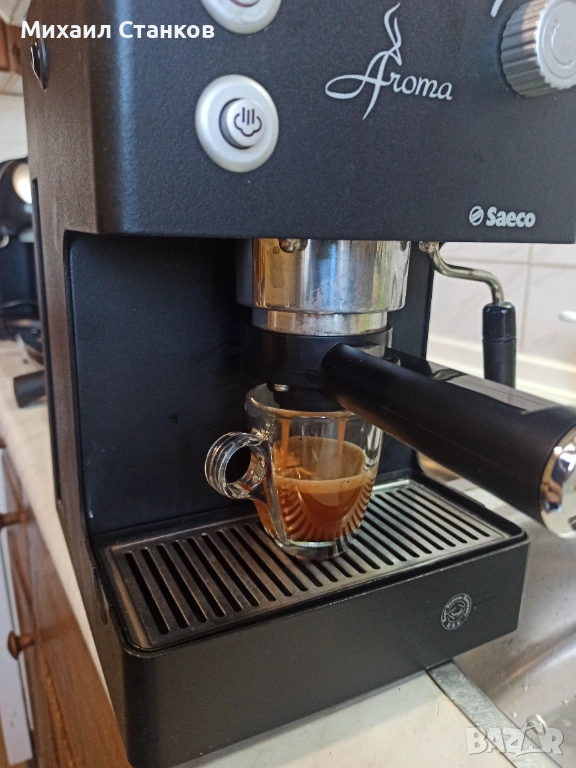 Кафе машина Саеко Арома с ръкохватка крема диск работи перфектно и прави супер кафе с каймак
