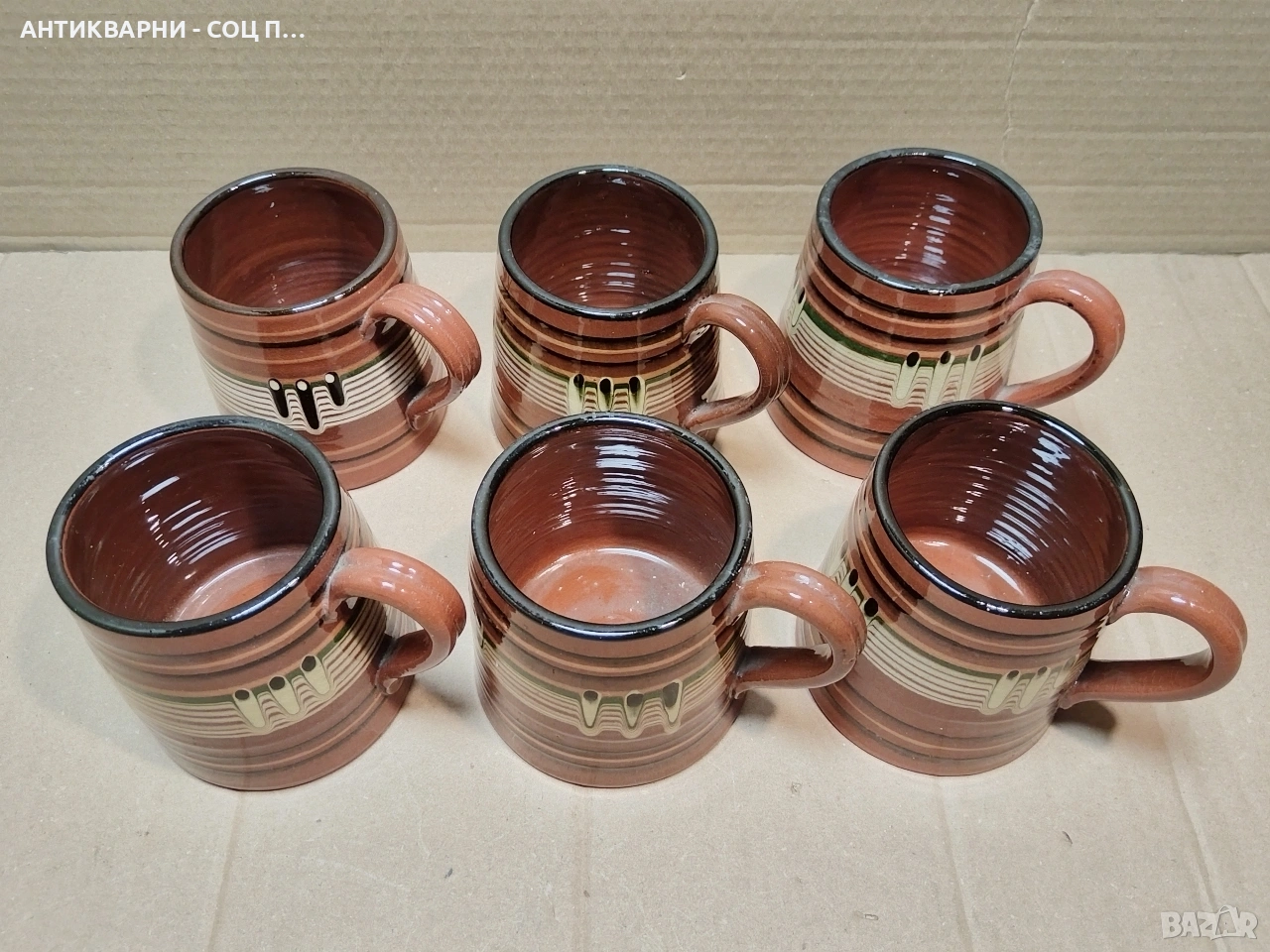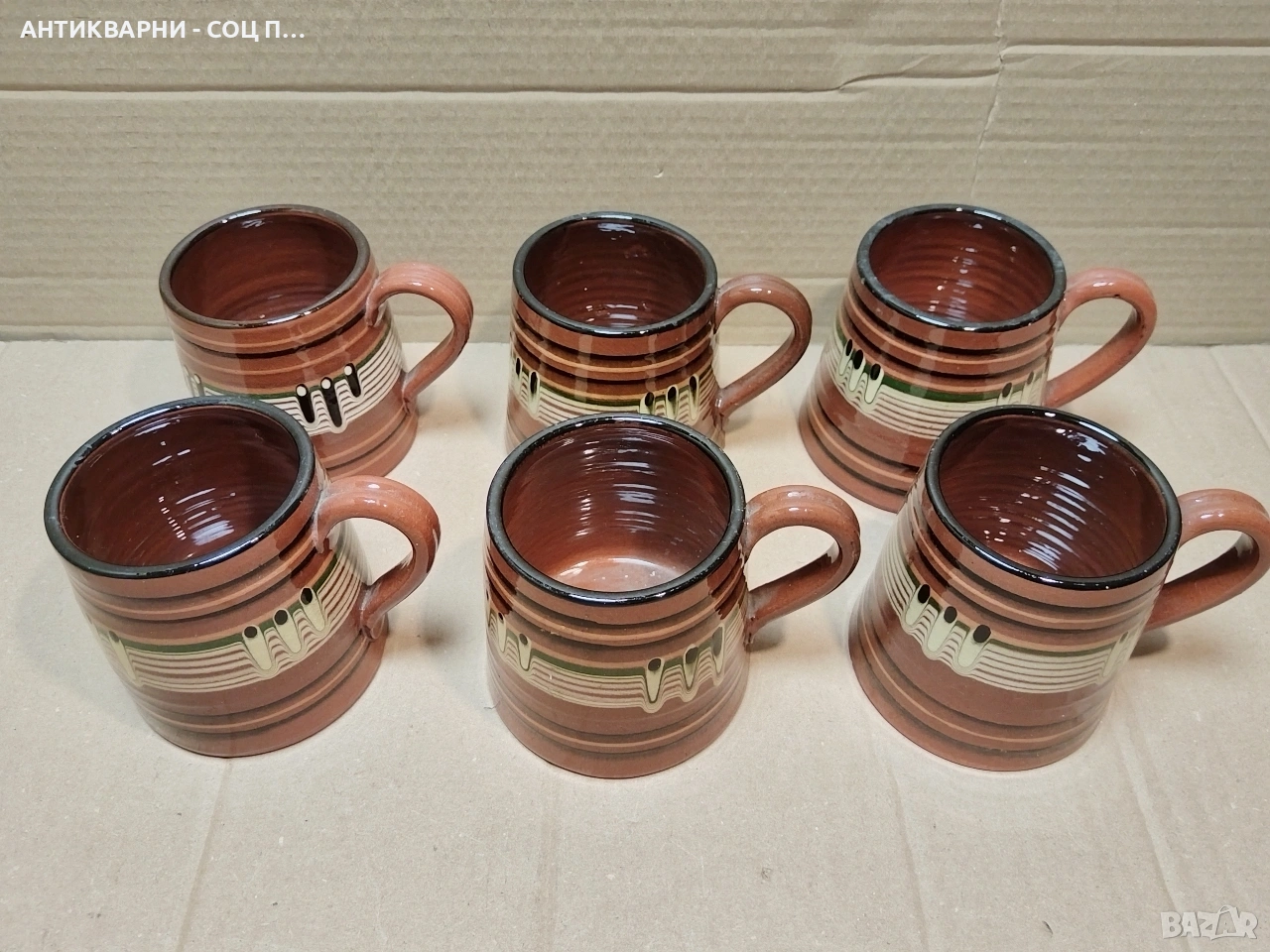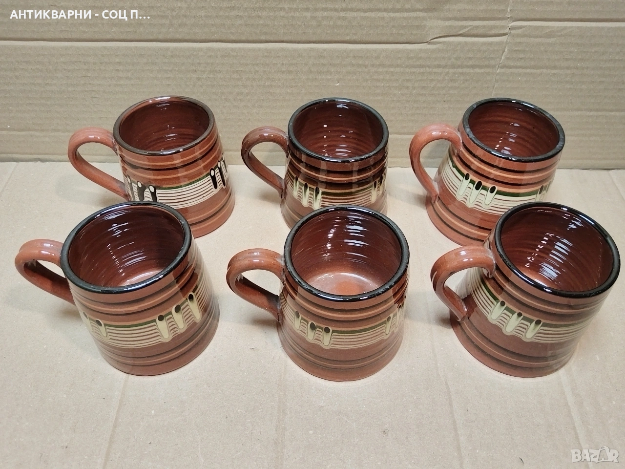Здравейте - Продавам Комплект Стари Соц Български Традиционни Керамични Халби За Вино. / 6 Броя!