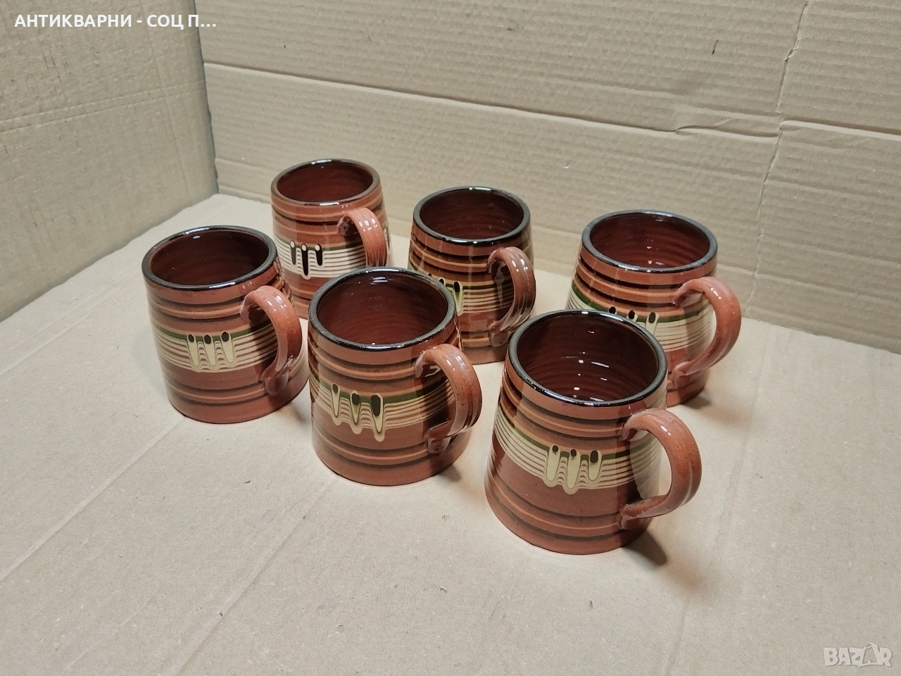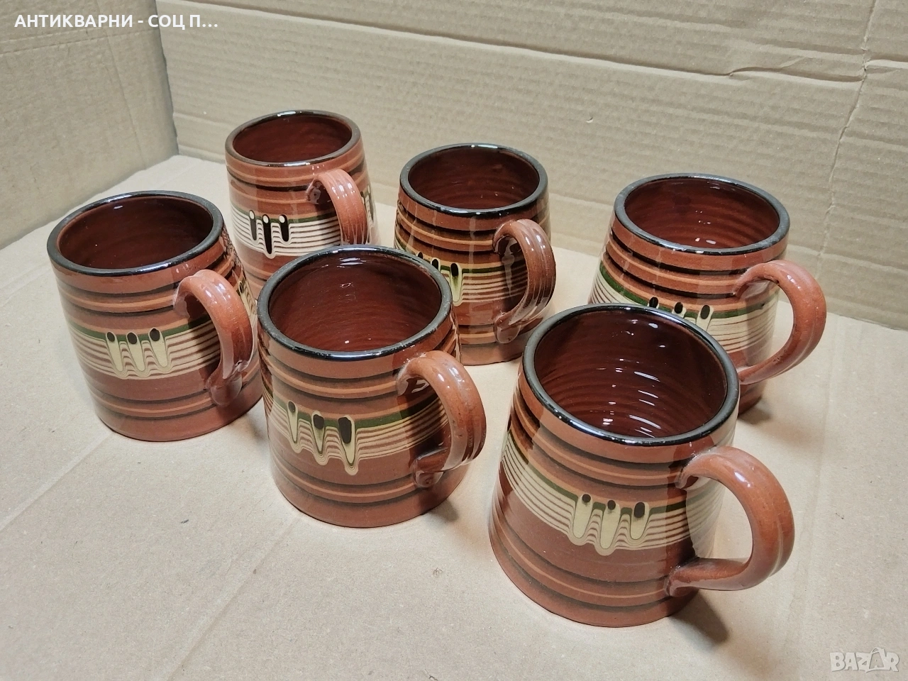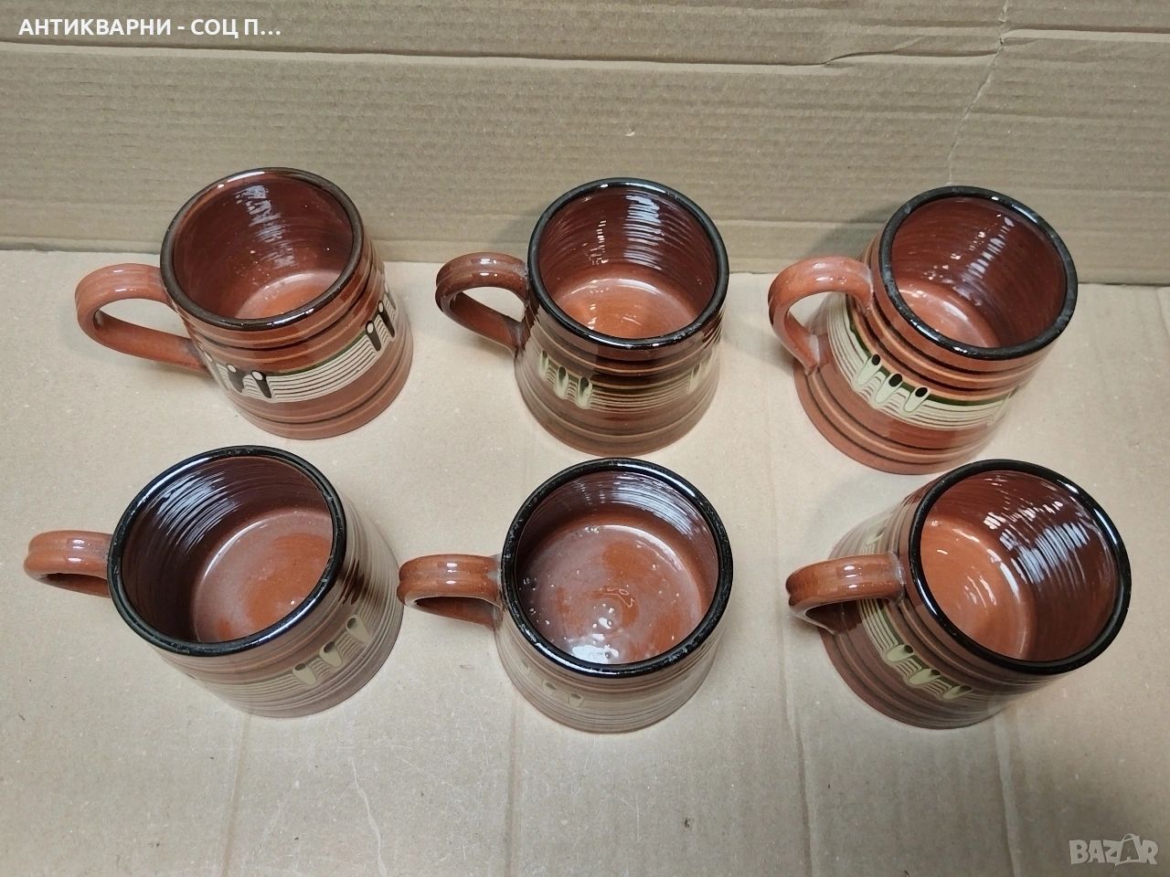Здравейте - Продавам Комплект Стари Соц Български Традиционни Керамични Халби За Вино. / 6 Броя!
