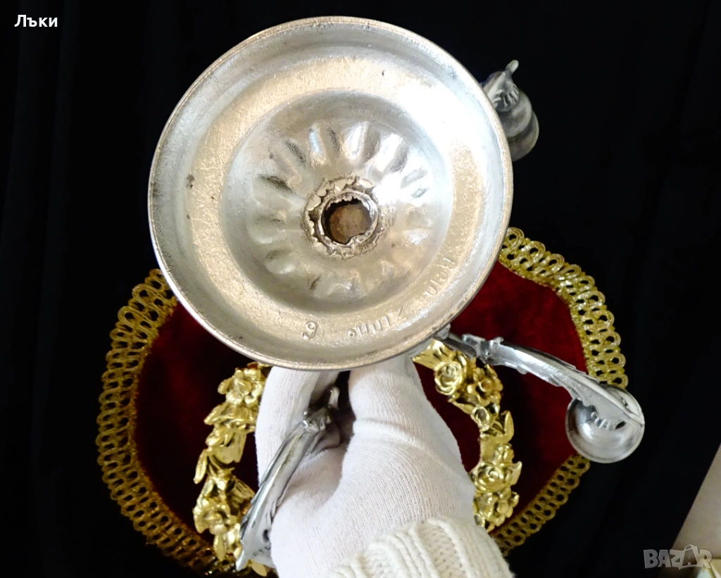 свещник,канделабър,майсторска ръчна изработка от 95% калай и 5% сребро,маркиран