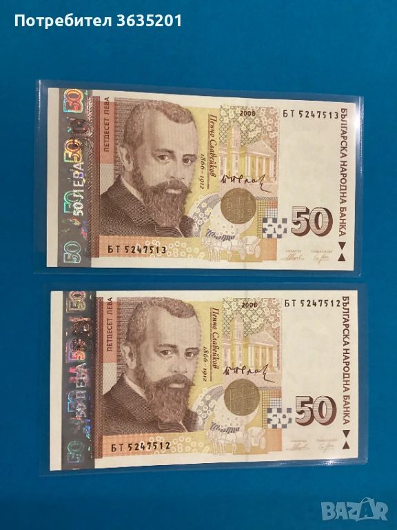 50 ЛЕВА 2006 поредни номера , снимка 1 - Нумизматика и бонистика - 53661057 50 ЛЕВА 2006 поредни номера , снимка 2 - Нумизматика и бонистика - 53661057 1/2