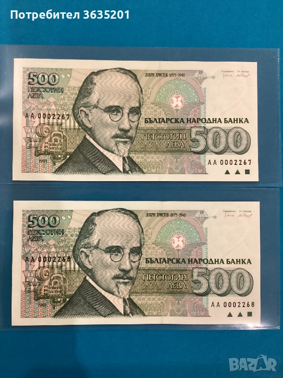 500 ЛЕВА 1993 нисък номер АА → Обява 53661341