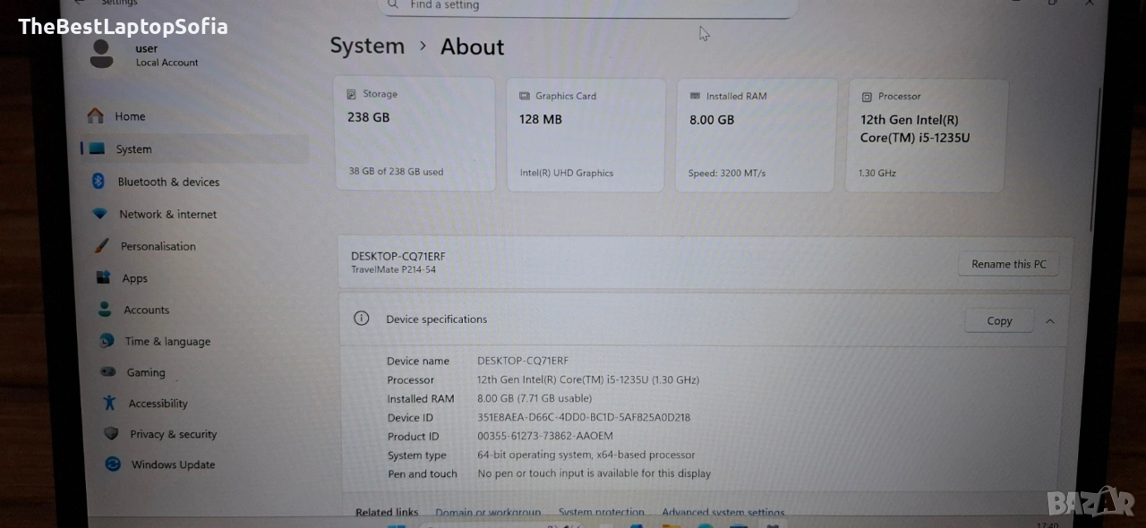 Лаптопа e модел 2024г. има козметични забележки единствено по корпуса драскотини. Дисплей , клавиетура техническо състояние перфектни. Много бърз 10 ядрен процесор , бърза рам памет и ssd , подходящ за програми някои игри и сърфиране в интернет и видеа. В комплект със зарядно. Инсталиран ъпдейтнат до последна версия Windows 11.