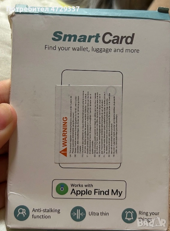 Продавам чисто нова смарт карта-тракер, идеална за тези, които често губят ключовете, портфейла или багажа си. Картата работи директно с приложението Apple Find My (Локатор) на вашия iPhone, iPad или Mac – без нужда от допълнителни приложения!