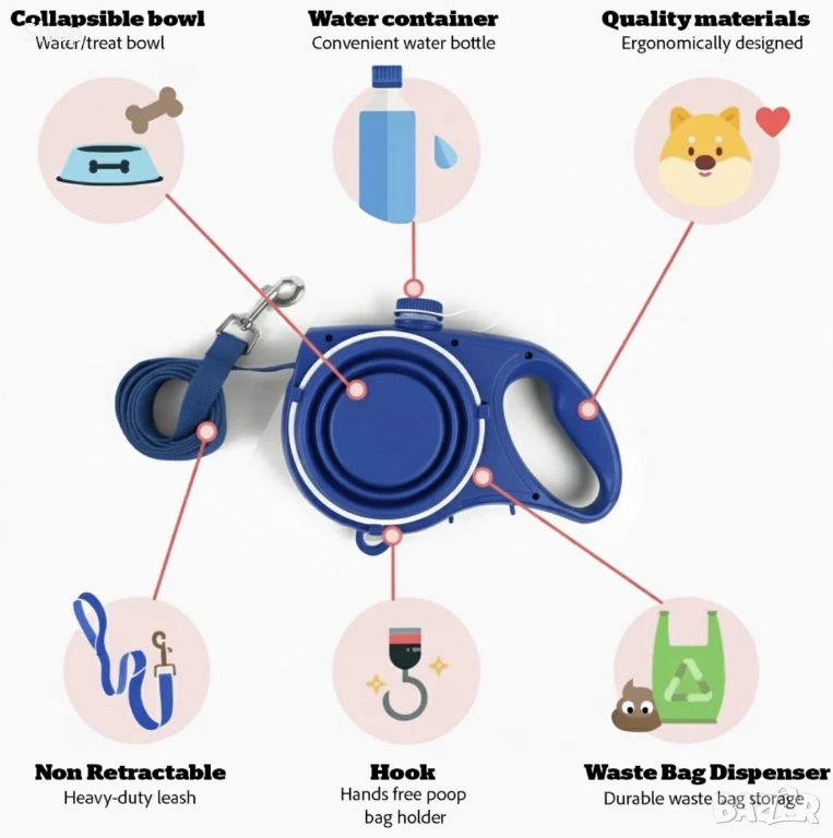 🦮 Каишка за кучета 5в1