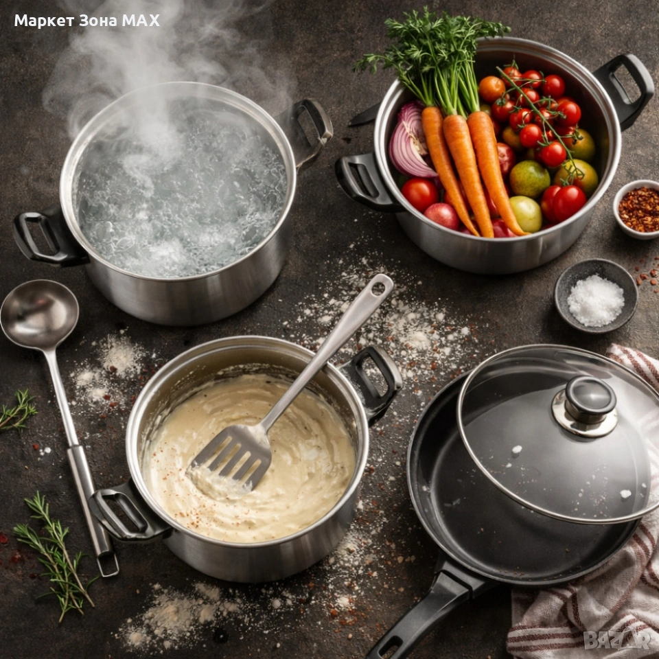 Комплект тенджери и аксесоари от 11 части - издръжливи и устойчиви