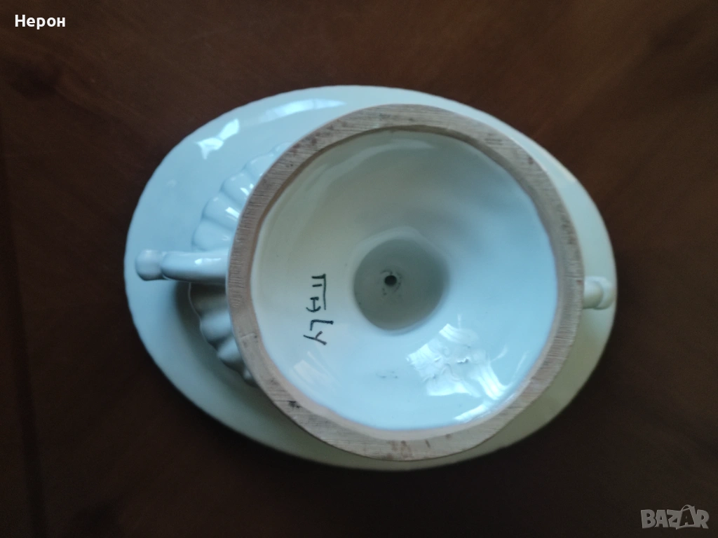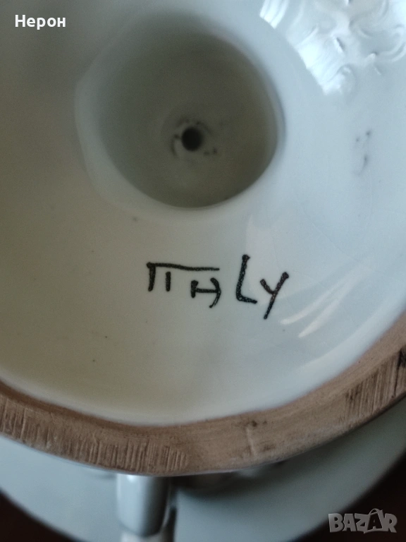 Винтидж порцеланова кашпа тип амфора с красив оребрен дизайн и две дръжки, произведена в Италия, ръчно изработена и маркирана , отлична.
