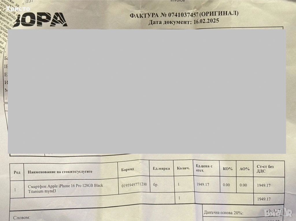 Телефонът е като нов – винаги е ползван с протектор на екрана и с гръбче, никога не е носен без защита. Няма забележки, без удари и следи от употреба. Работи отлично, както и всички негови функции. Закупен е на 16.02.2025 г. с 24 месеца гаранция, която е валидна. Предоставя се с кутия и документи за покупка.