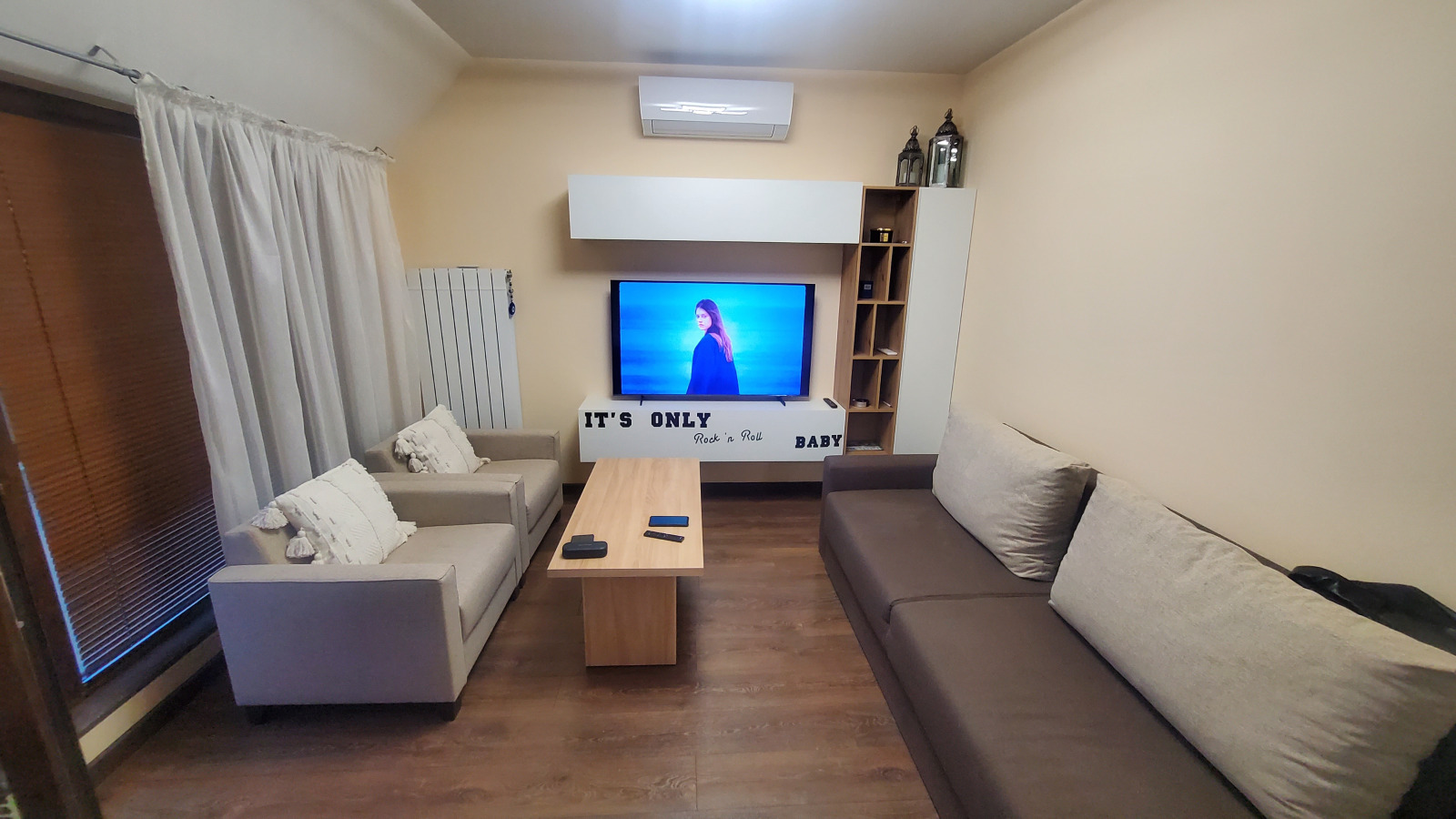 Отоплението е на тец, както разполага с Климатик.