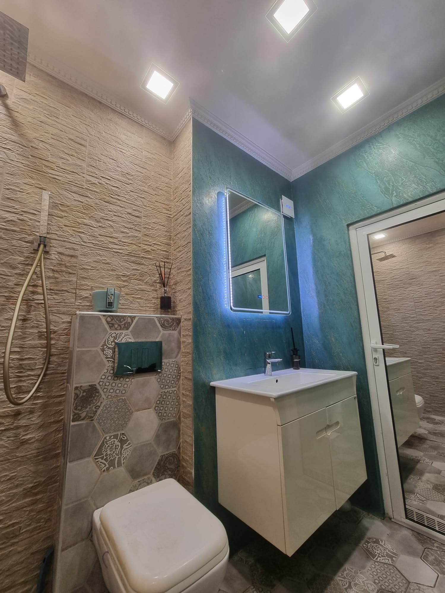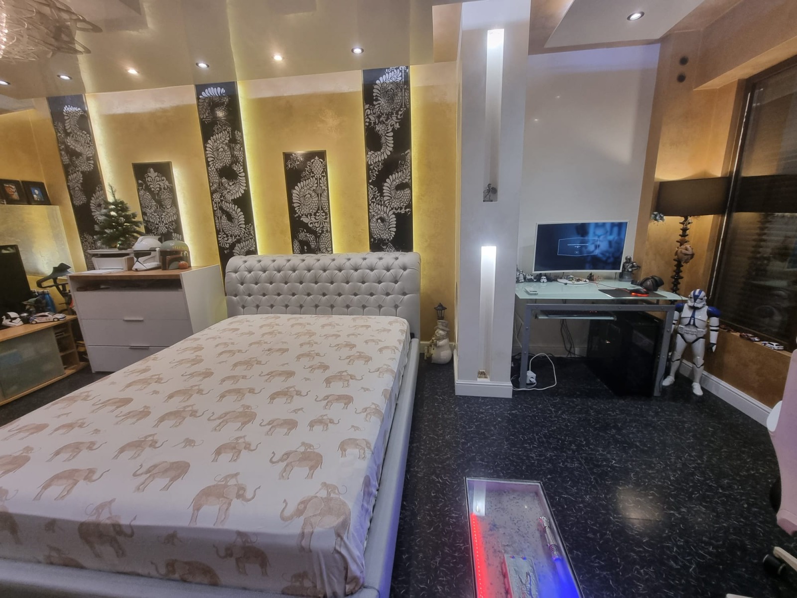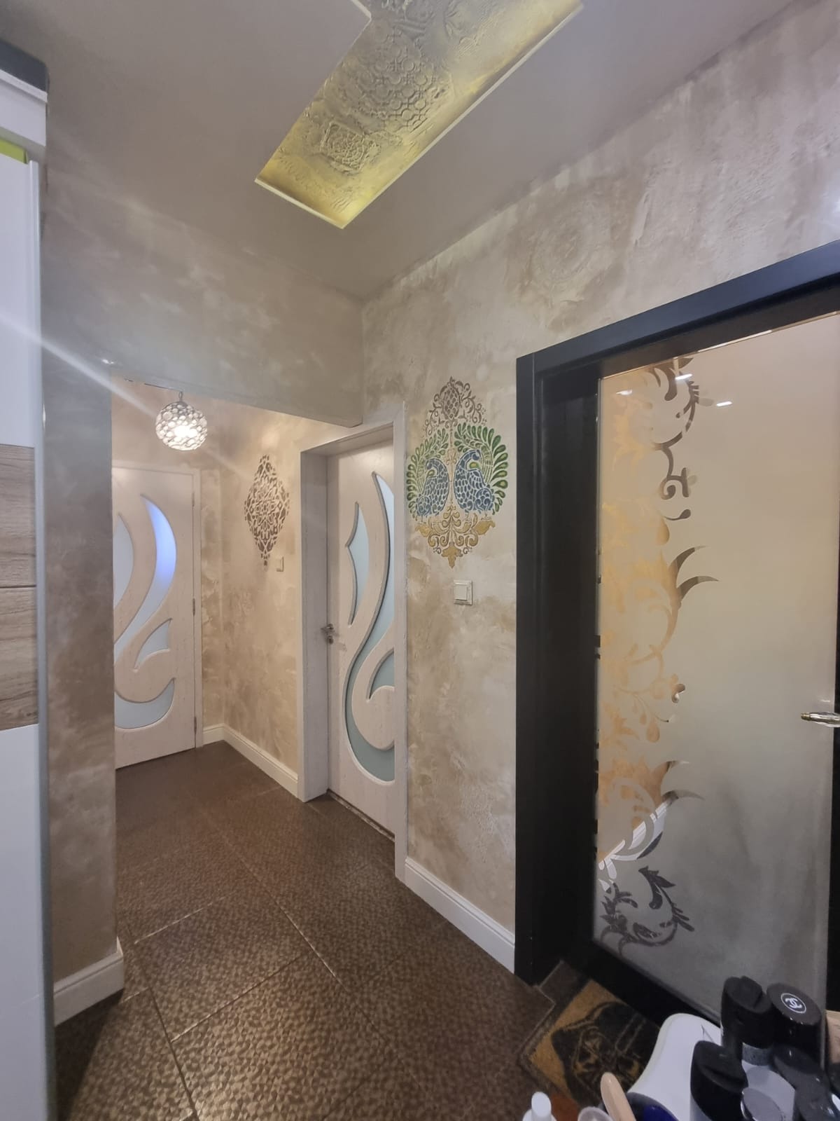 Таван- Гипсокартон и Stucco Veneziano, LED осветление- луни