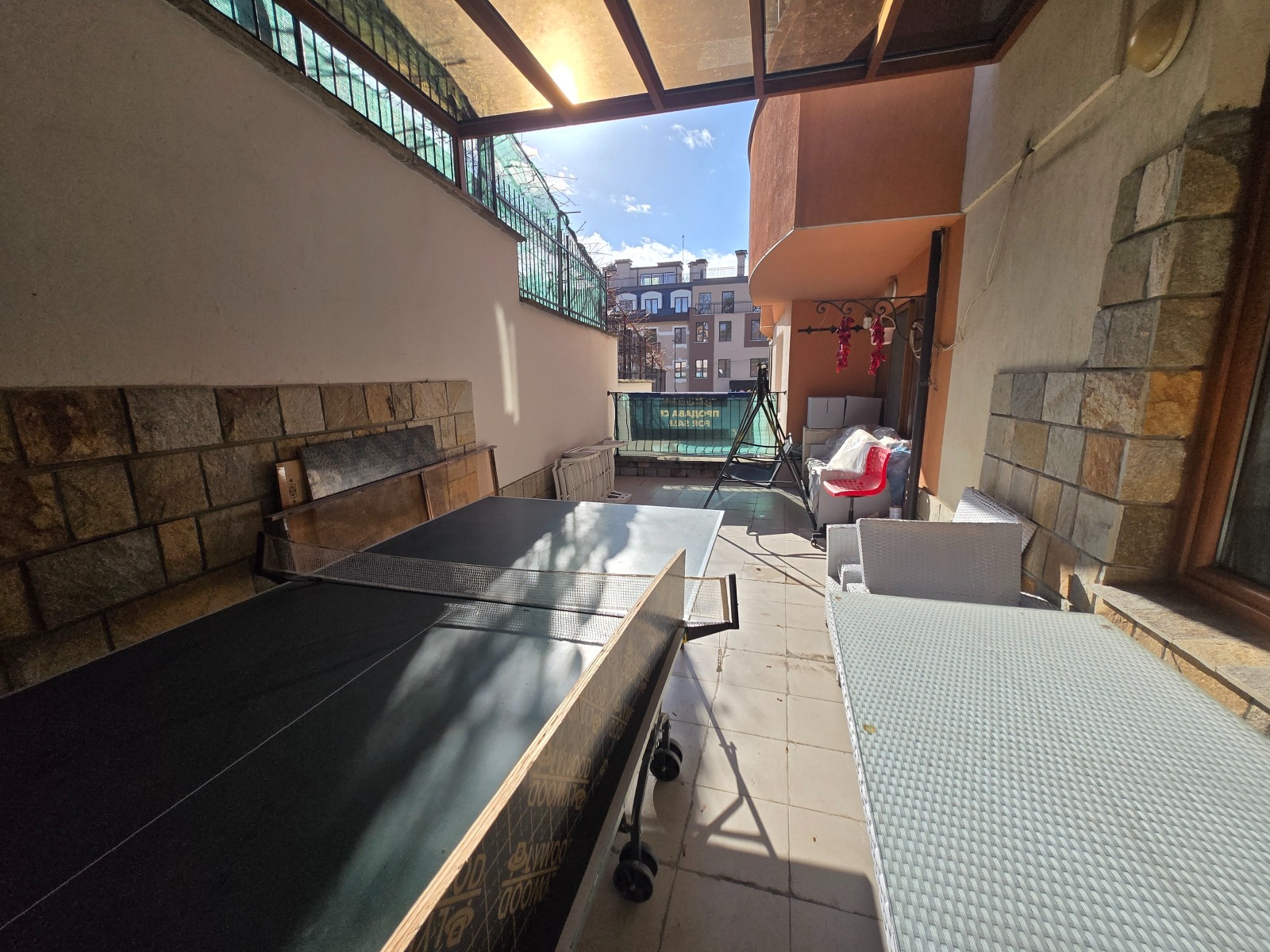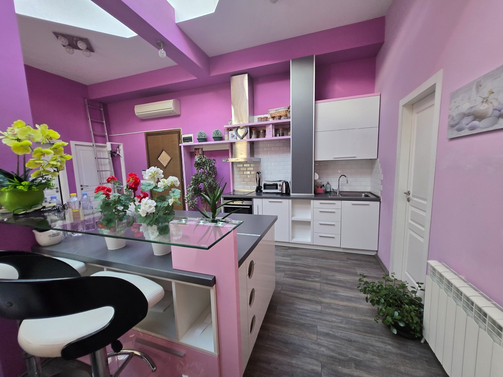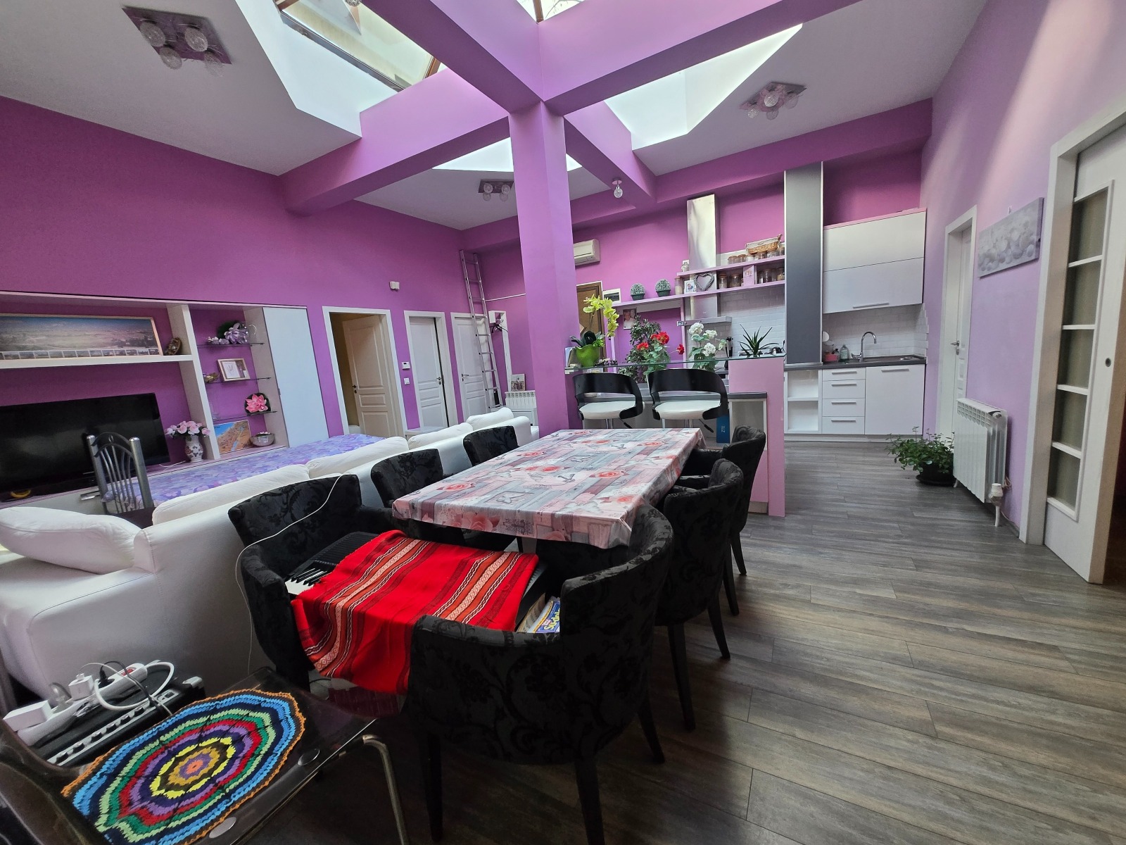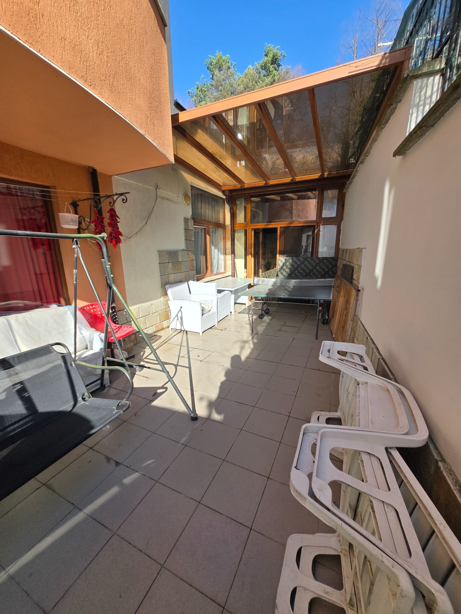 100 кв.м, разположен в самия център на гр. Банкя. Имотът разполага със собствен вход и голяма тераса, която наподобява уютен двор идеално място за релакс и открити пространства.
