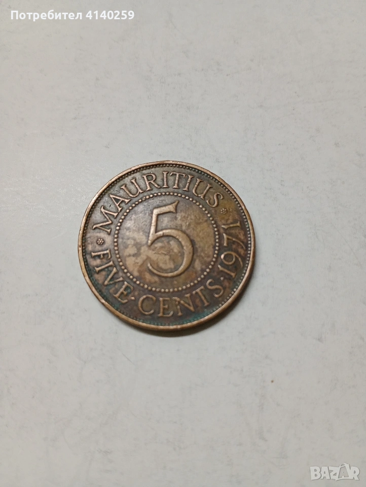 ОСТРОВ МАВРИЦИЙ МОНЕТА 5 ЦЕНТА 1971 Г НЕЧИСТЕНА СЪСТОЯНИЕ ОТЛИЧНО ПОЛУЧАВАТЕ СНИМАНАТА МОНЕТА РАЗГЛЕДАЙТЕ ДРУГИТЕ МИ ОБЯВИ ДА КОМБИНИРАТЕ ДОСТАВКА ЕКОНТ ЗА ВАРНА ЛИЧНО