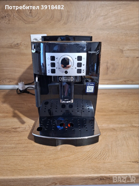 Кафеавтомат Delonghi Magnifica S ECAM 22.110.B, 1450 W, 5 вида напитки, приготвяне на две чаши кафе, 15 бара, система за разпенване на мляко, мелачка с 13 настройки.