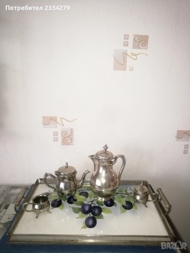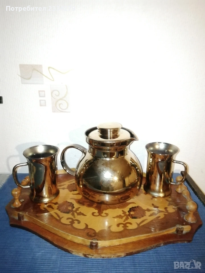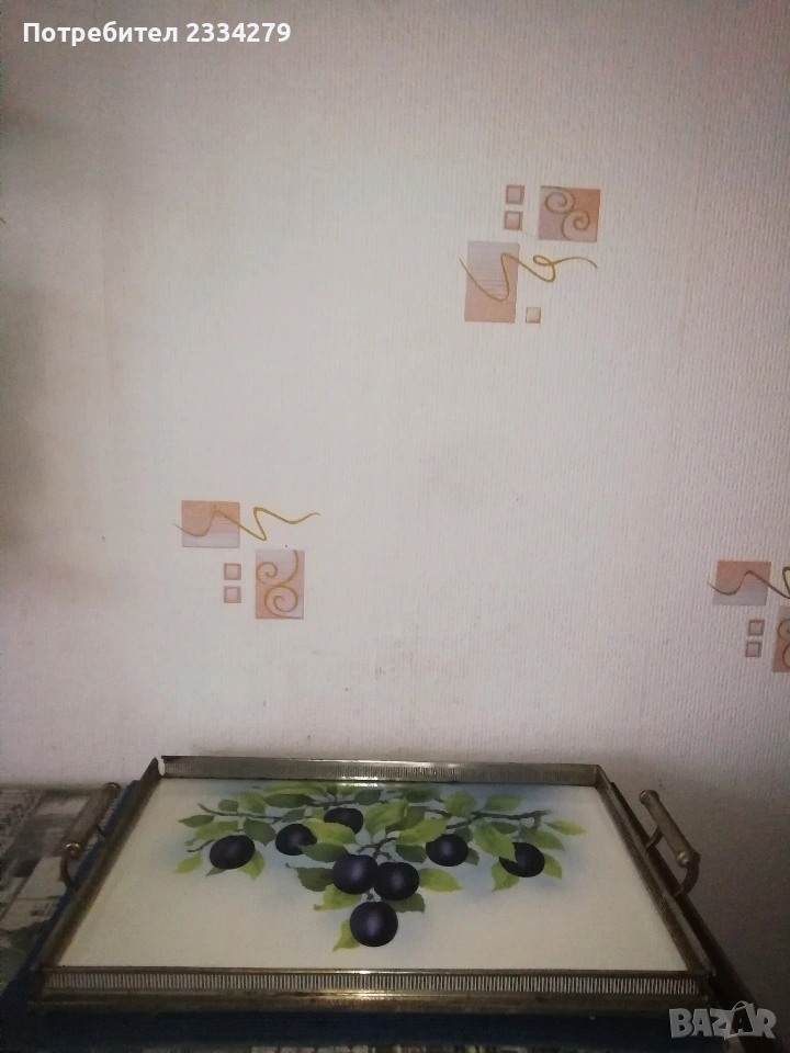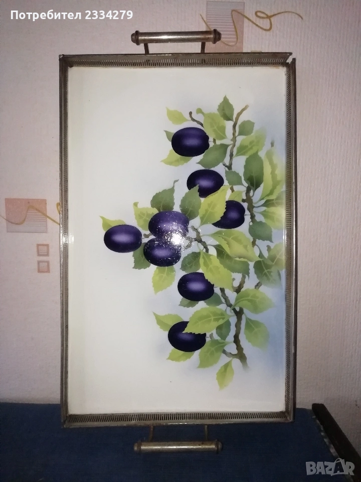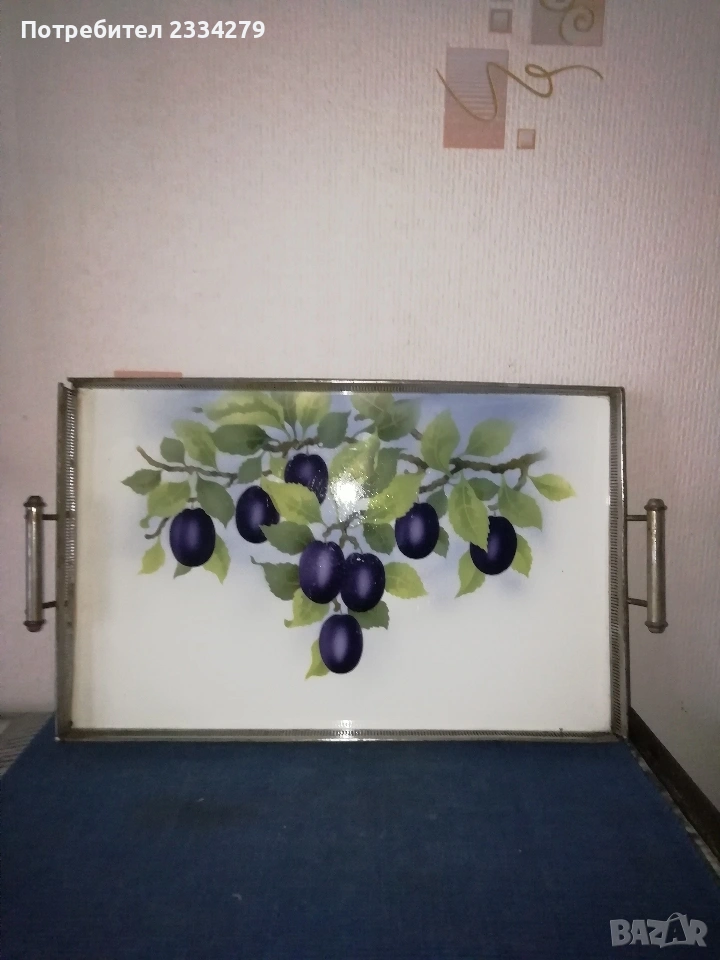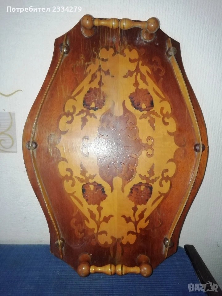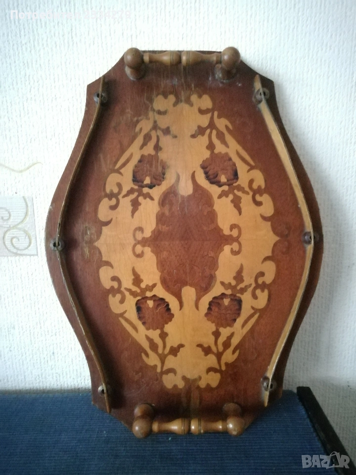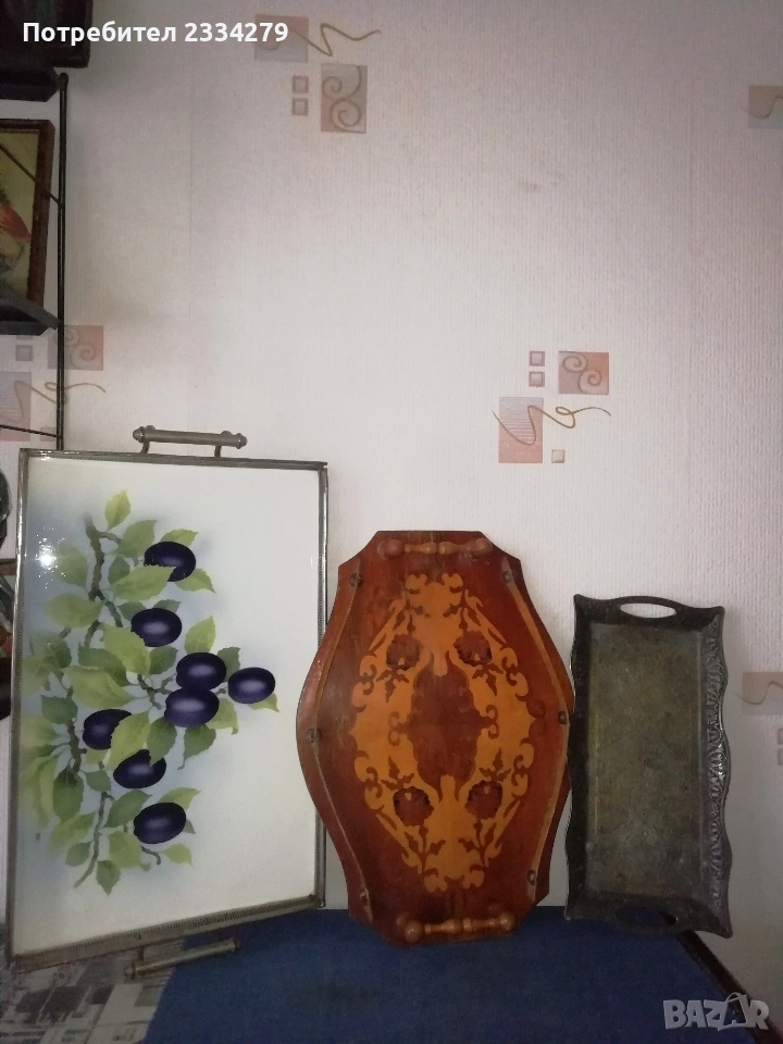Антикварни подноси: дървен поднос интарзия, бронзов поднос, поднос метал и порцелан. .
