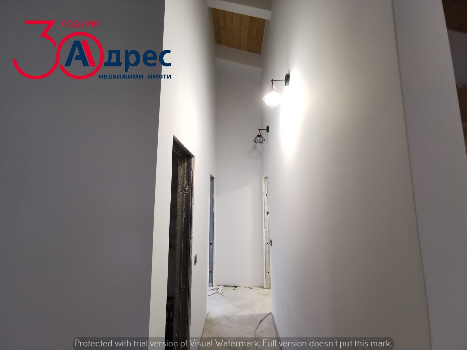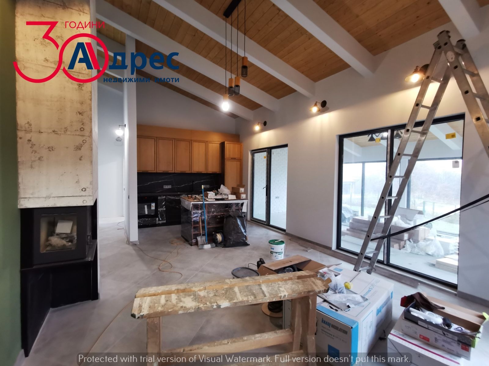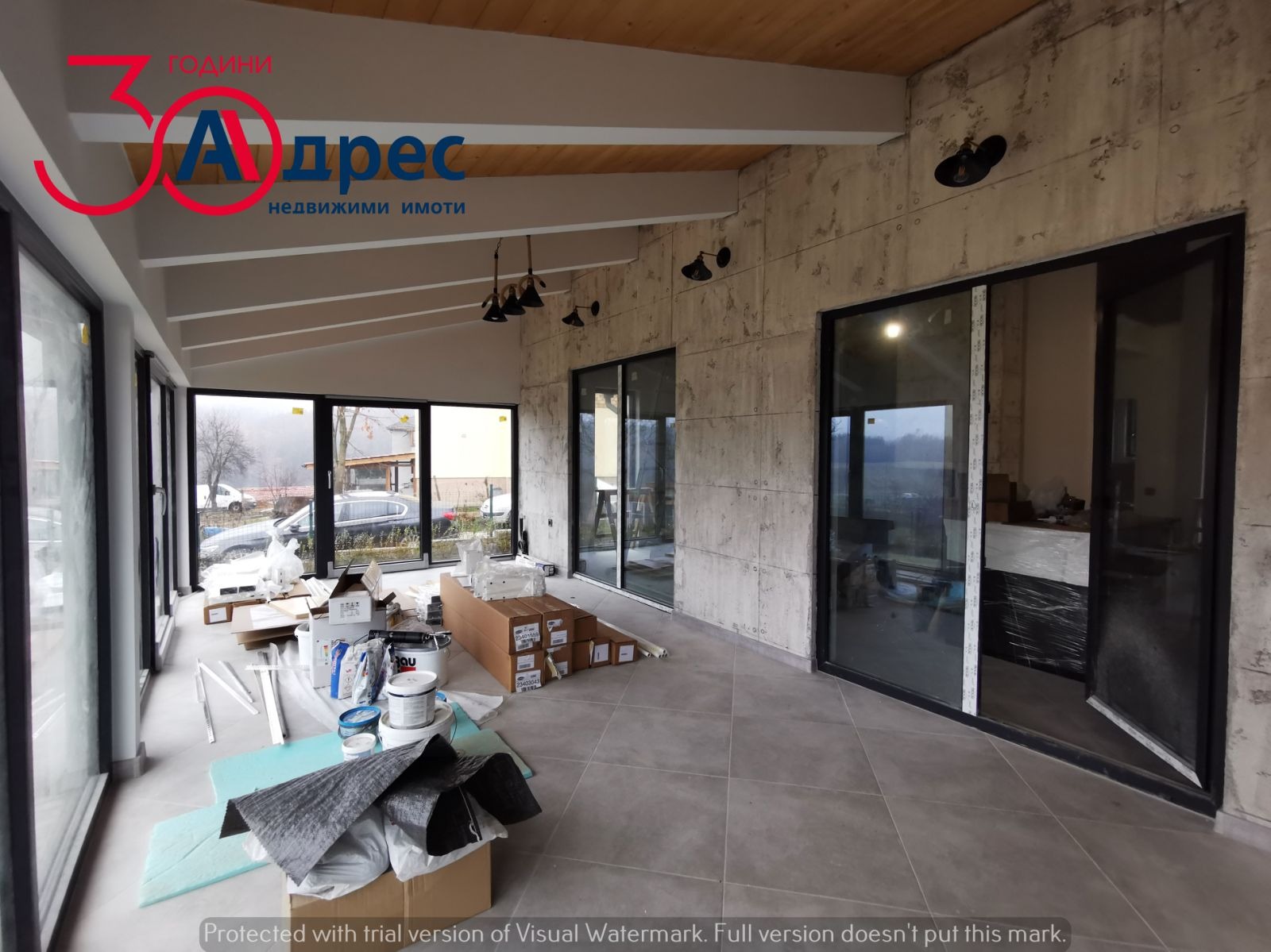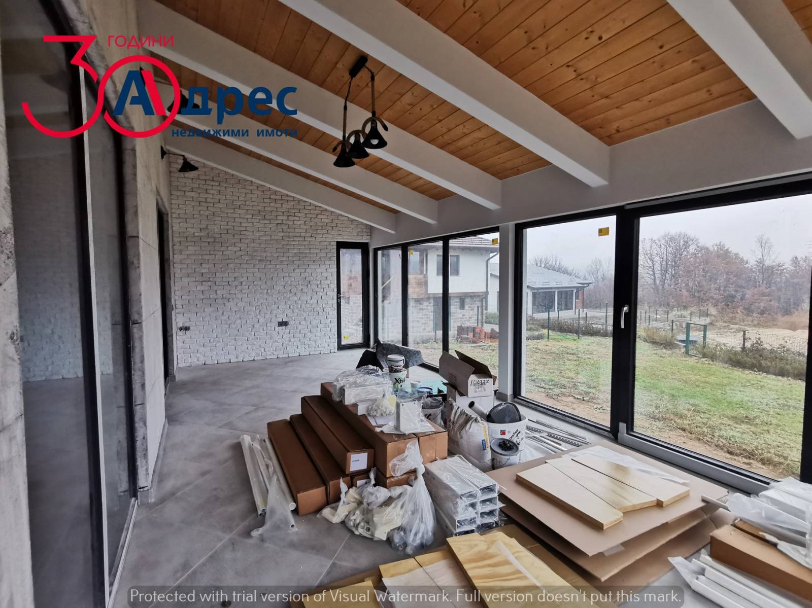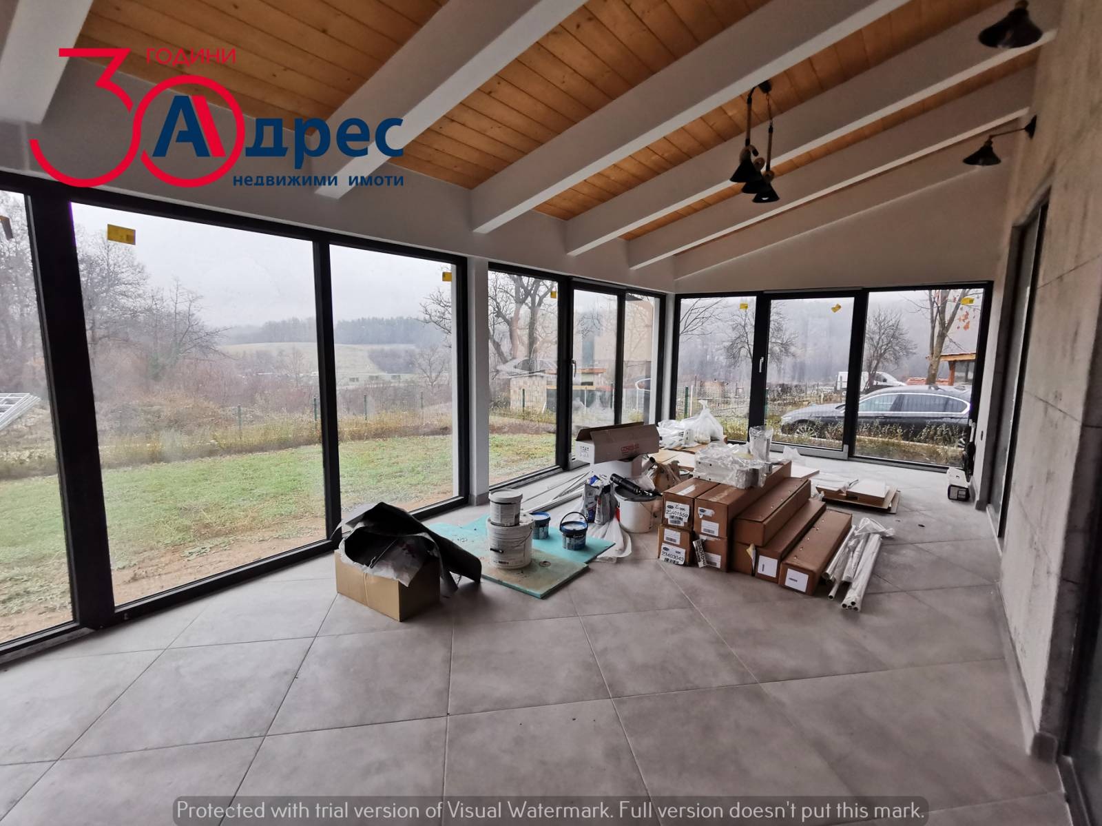 Разположен сред красива природа, чист планински въздух и гледки на минути от центъра на град Габрово, разполагащ с прекрасно озеленен двор около цялата къща, входна врата с автоматика, предвидено пространство за две паркоместа, както и възможност тези паркоместа да се превърнат в покрити или с изграден цялостен гараж. В жилищната част на къщата са обособени просторна всекидневна с кухня, втори етаж тип лофт, просторна веранда, остъклена с алуминиева дограма с френски прозорци със стъклопакет '4 сезона' и отварящ мехаизъм тип 'Фолксваген', което дава възможност за целогодишно ползване, три спални, всяка със собствена баня с тоалетна. Отоплението на всички помещения се усъществява посредством термопомпа и подово отопление.