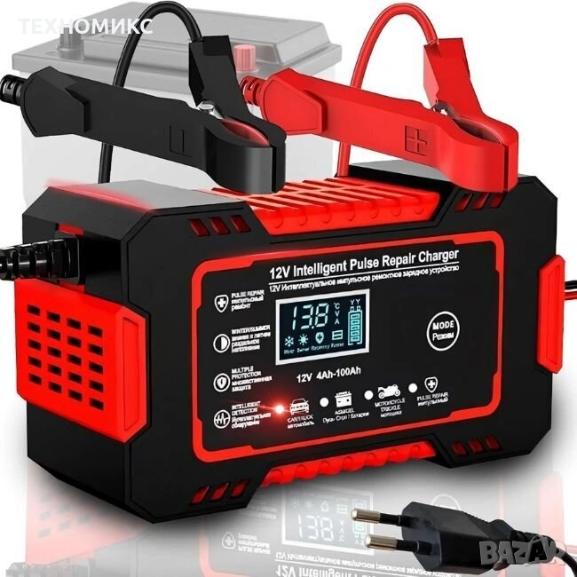 Зарядно устройство за кола , 12V 6A, LCD дисплей, режим на ремонт → Обява 53663094