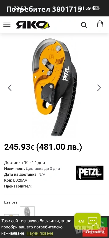 2.Автоматично блокиращ десандьор I'D на Petzl с функция анти-паника, подходящ за работа от въже