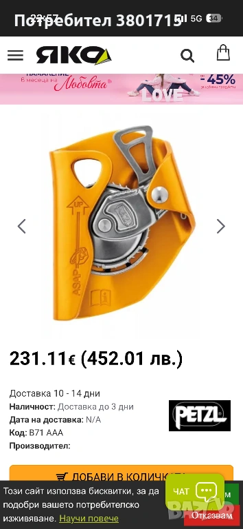 Petzl блокира към въжето възможно най-бързо (ASAP: As Soon As Possible).