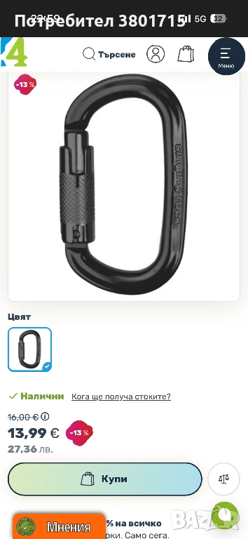 4.Автоматични заключващи карабинери Singing rock 2 броя към комплекта и подарък още 2 броя.