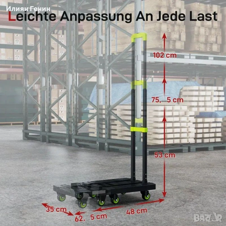 Тройно регулируема височина на дръжката: С три регулируеми височини на дръжките, транспортната количка се адаптира перфектно към вашите нужди, независимо дали превозвате товари у дома, в офиса, по време на пътуване или на работа.