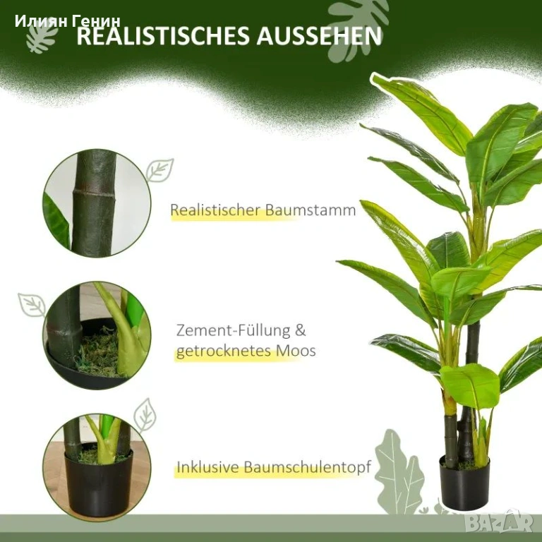 Изкуствени растения HOMCOM 150 см, изкуствени растения в саксии, изкуствено бананово дърво - 50.00 €.