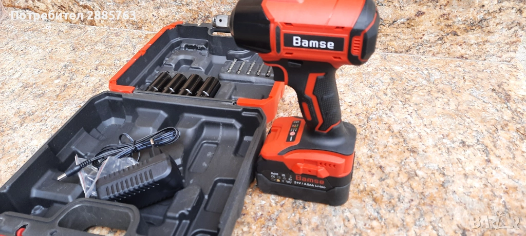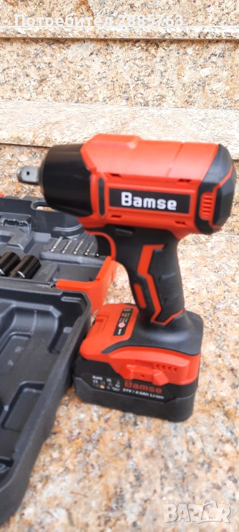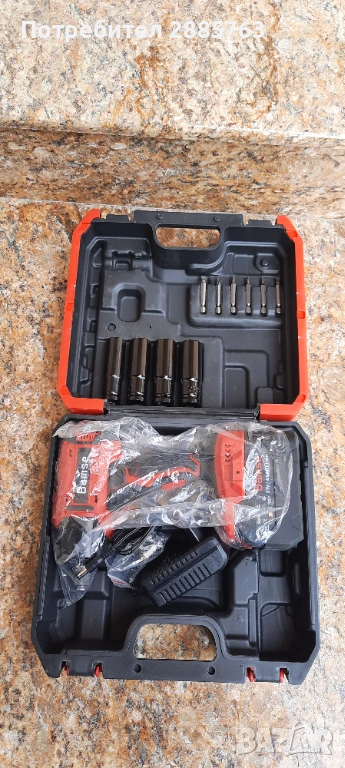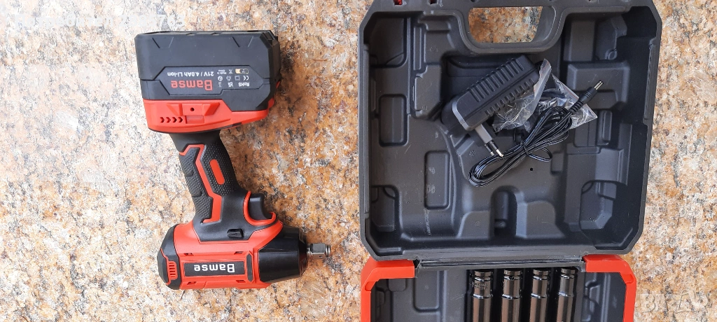 Гайковерт със батерия и зарядно и куфар скамъни и бинове
