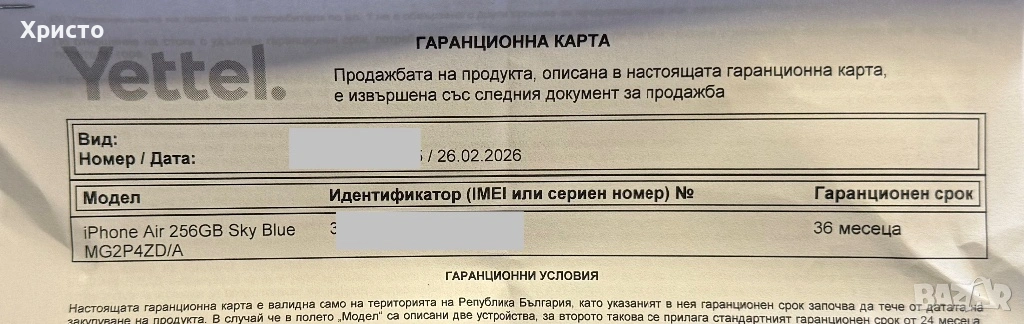 Телефонът е чисто нов, неразпечатан, закупен на 26.02.2026 г. с 36 месеца гаранция. Предоставя се с документите за покупка. Устройството работи с всички мобилни оператори и няма никакви ограничения или риск от заключване. Моделът разполага с мощния Apple A19 Pro процесор, 6.5” Super Retina XDR дисплей с ProMotion до 120Hz, 256GB памет и 5G свързаност – изключително бърз, модерен и премиум смартфон.
