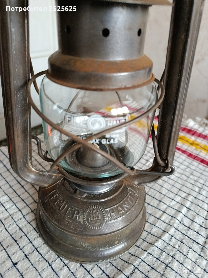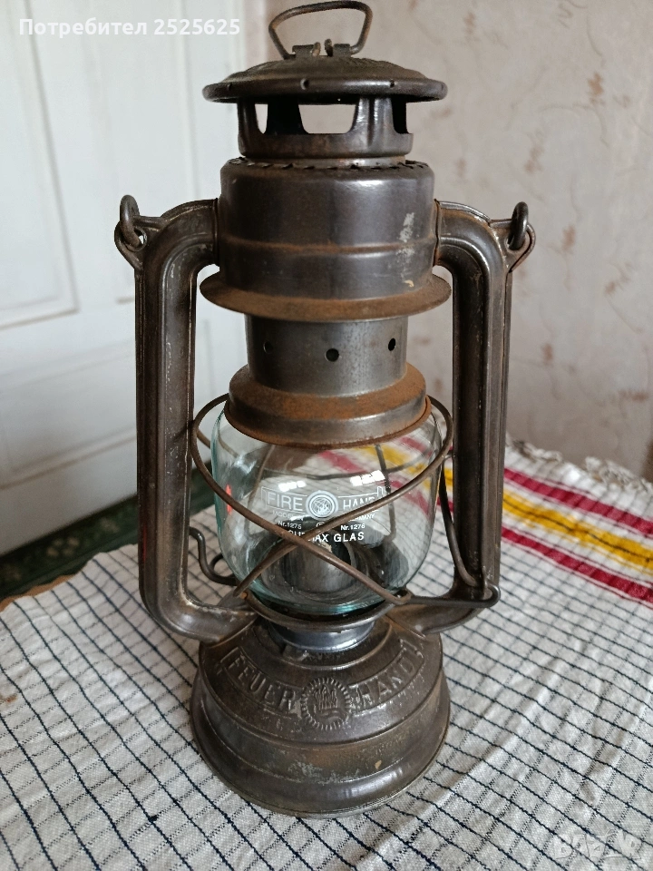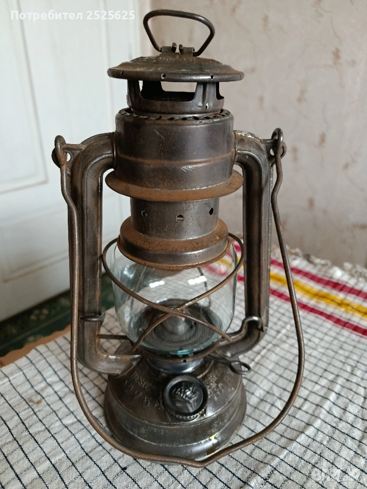 Фенера е в много добро състояние, всички части са оригинални, поставен нов фитил. Висок 245 мм.